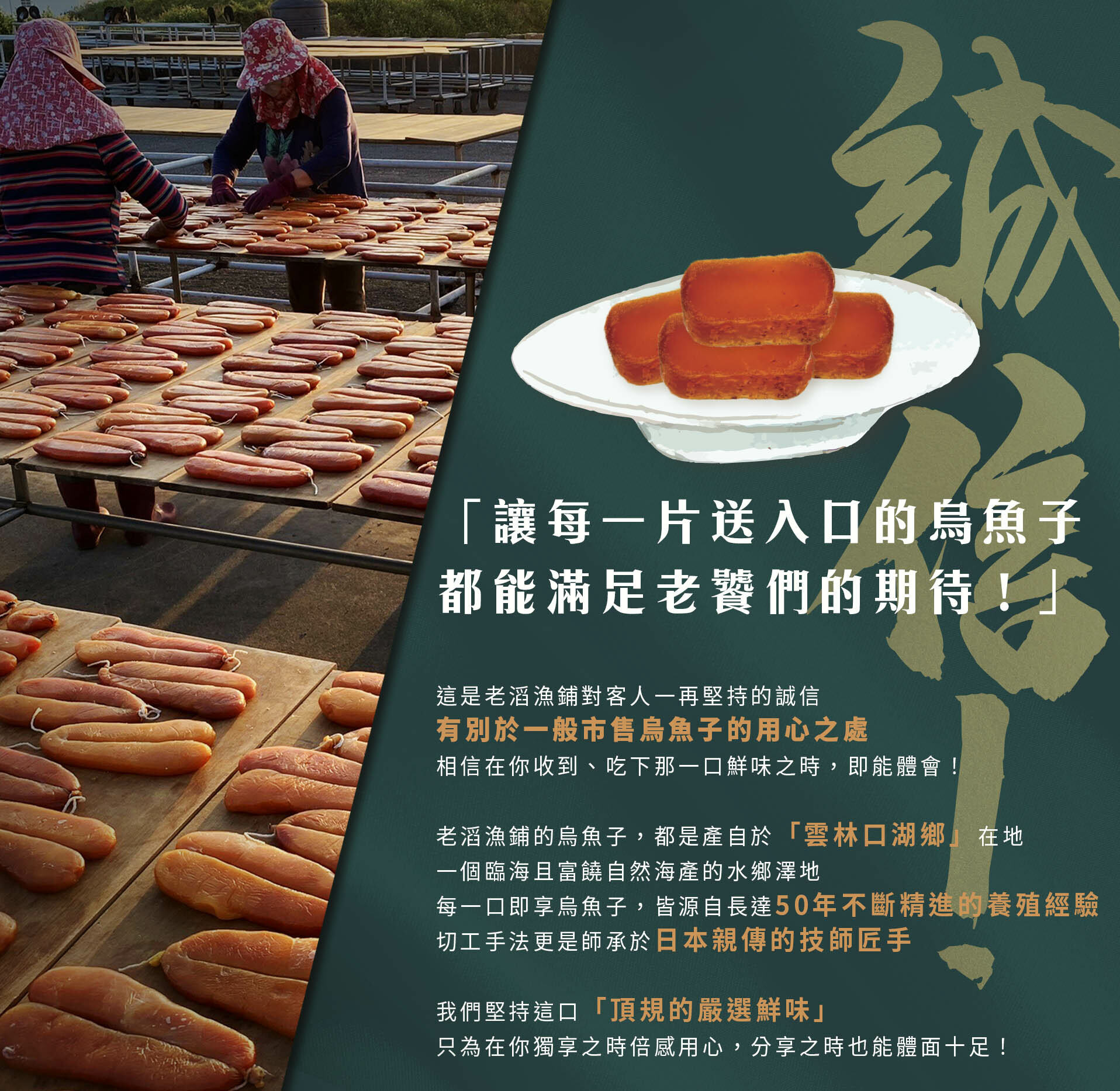 👉承襲50年來不斷精進的烏魚子養殖技術